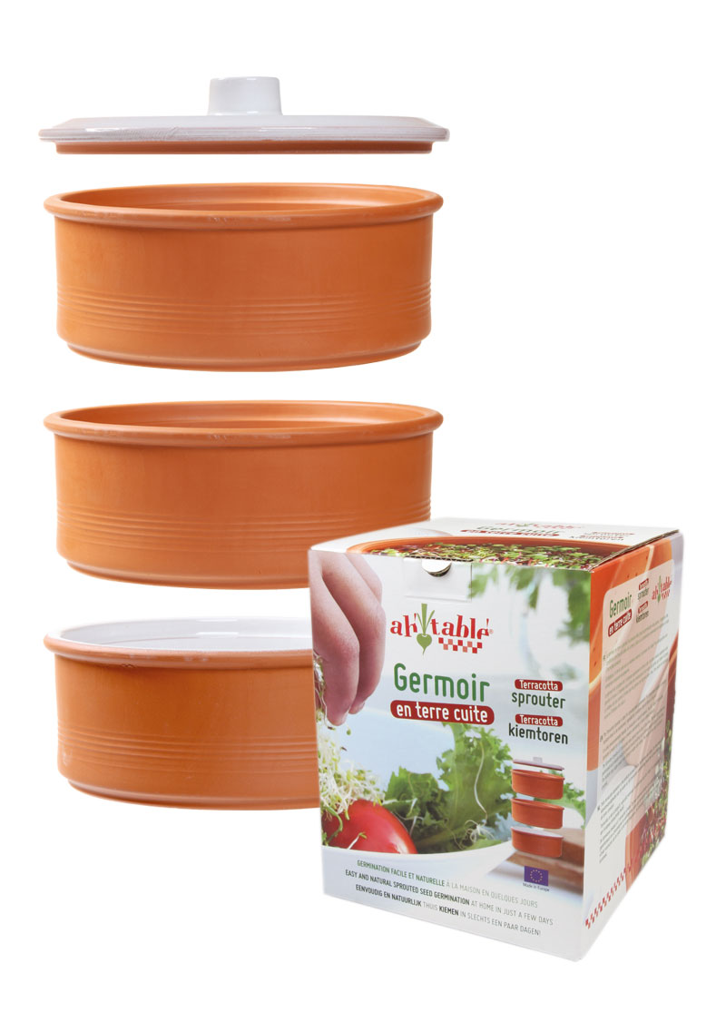 Un germoir pour faire germer les graines facilement et à volonté à la maison. La terre cuite est le matériaux idéal pour maintenir une humidité régulée propice à la germination.